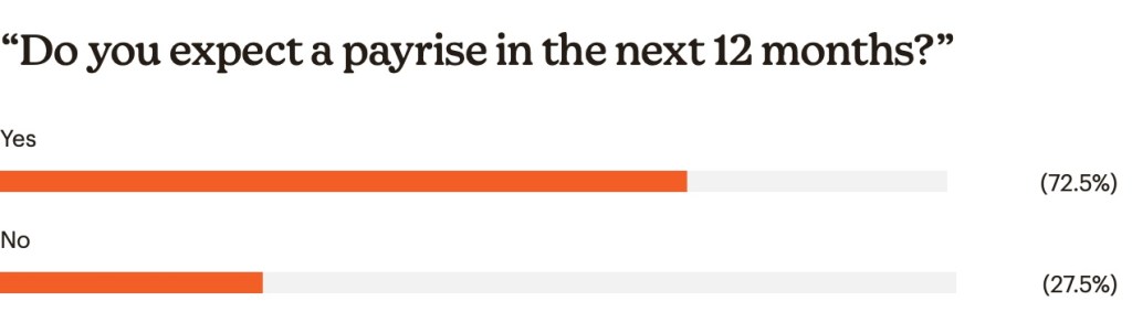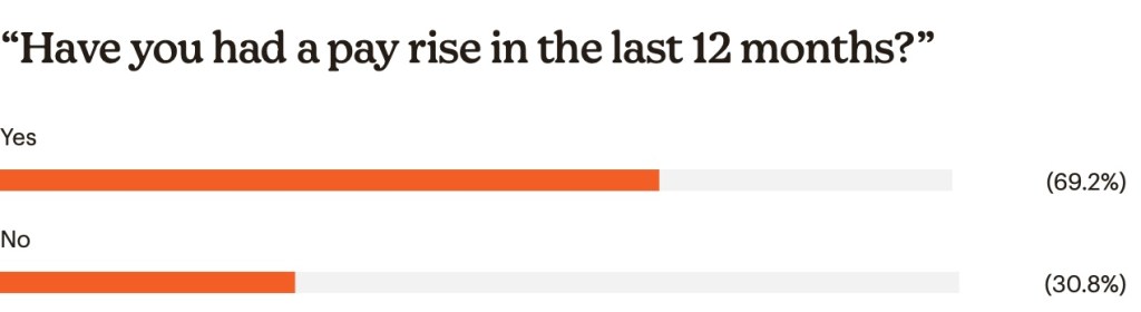 Despite 70% receiving a payrise, over 50% of respondents are dissatisfied with their level of pay….