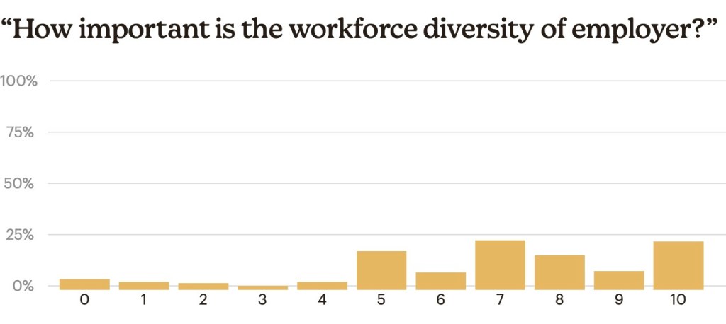 Employer approach to Diversity is also increasingly important with only 4% of people now seeing it as being unimportant, the majority seeing it a being an important part of their employers mindset. The average score was 6.7.