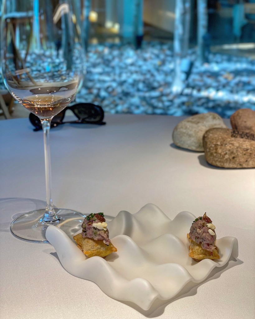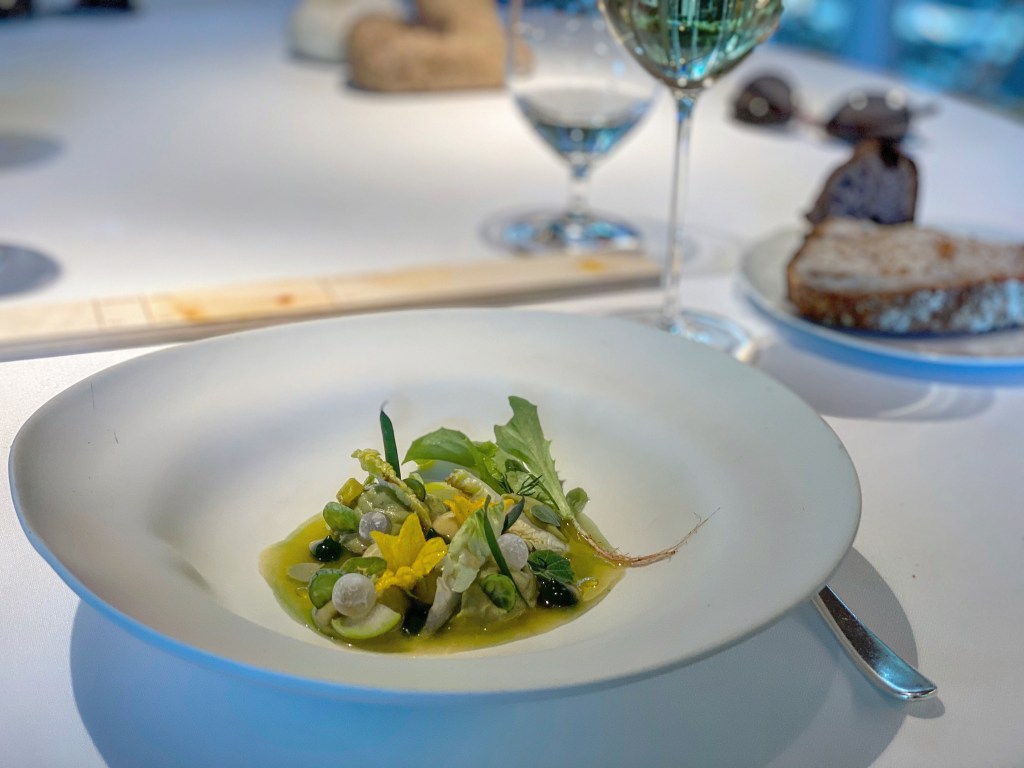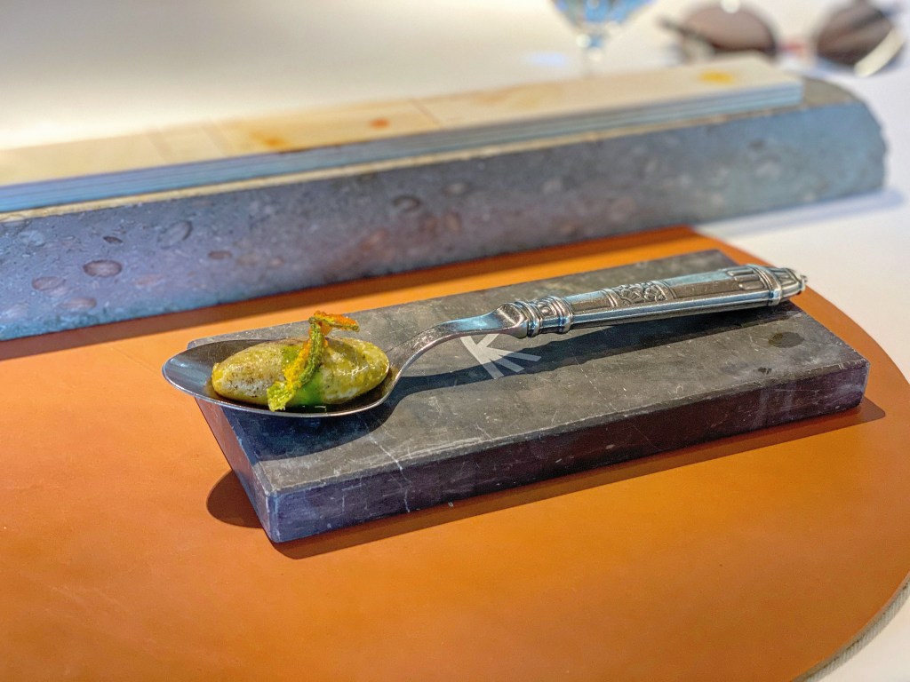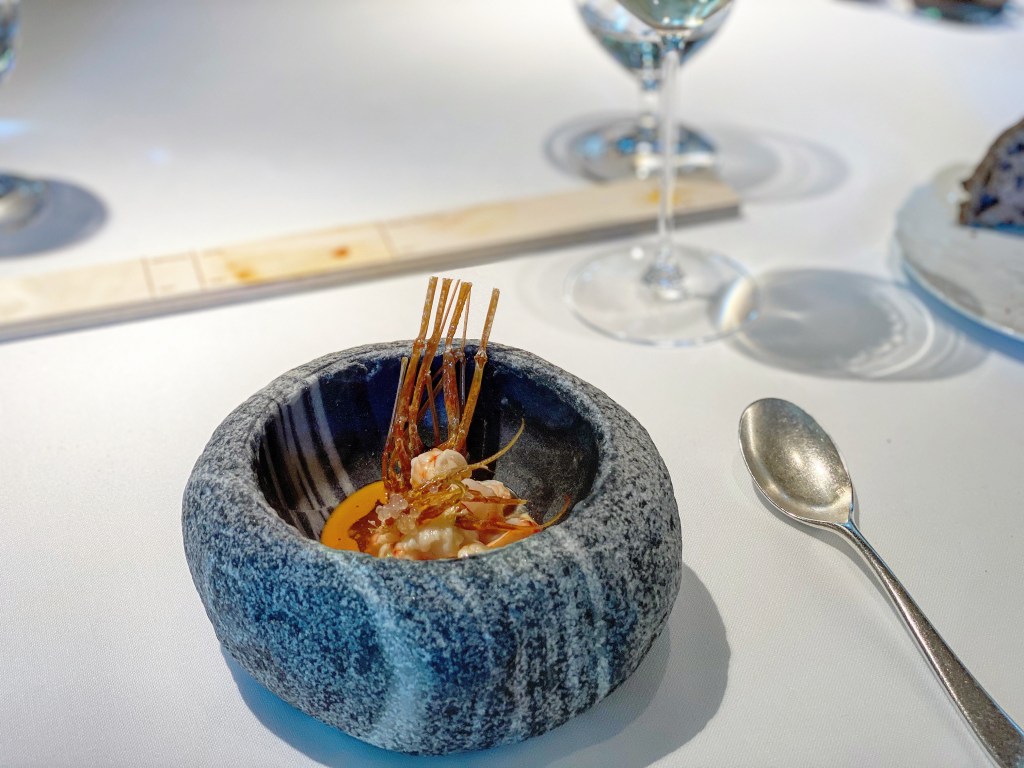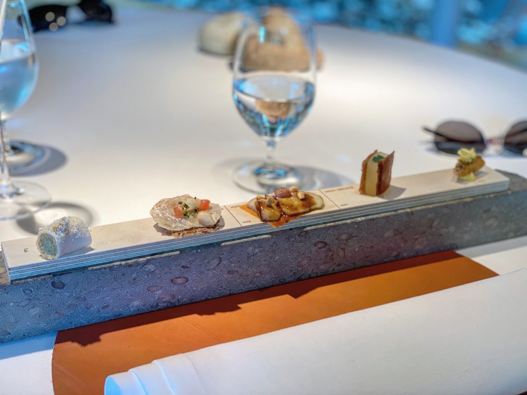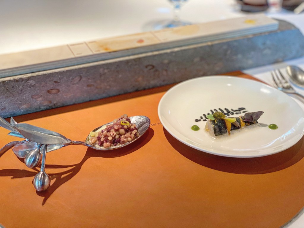 The dining room is a triangle of glass around a small indoor forest, fifteen tables at most, hushed but alive with anticipation. There is energy here, a low hum you can feel before the first plate arrives. And what plates they are. We chose the shorter tasting menu, a modest seven courses, preceded by ten amuse-bouches that arrived like postcards from far-off countries, each one a wink before the main narrative began. Every dish felt like theatre, presentation matched only by taste, and when paired with the extraordinary wines Josep poured with priestly devotion, each course became part of a larger symphony.