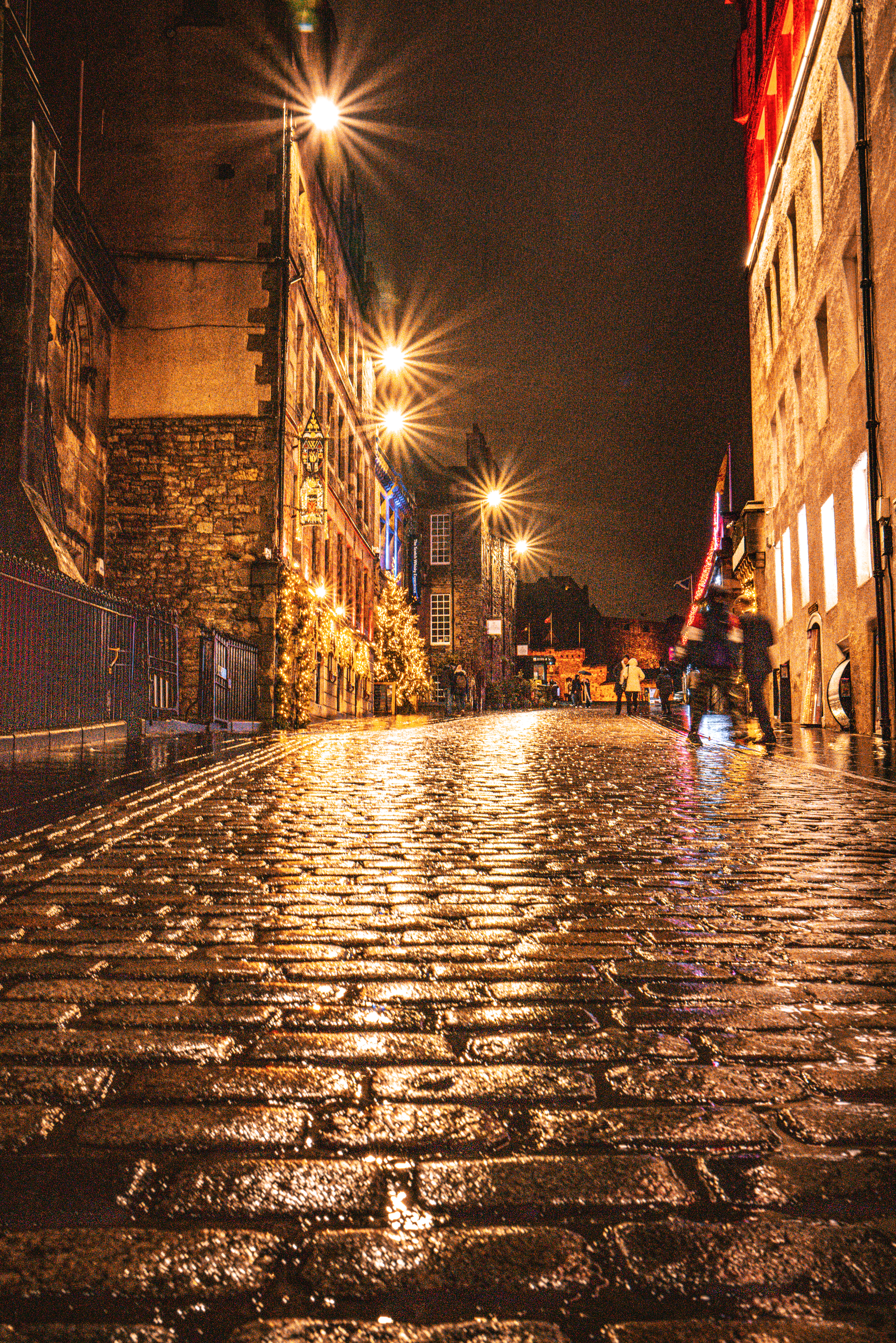 Find the hidden Diagon Alley, you’ll know it when you do, and climb the steps for a balcony glimpse back down the curve of the street. Continue upward via Upper Bow and onto Castlehill.