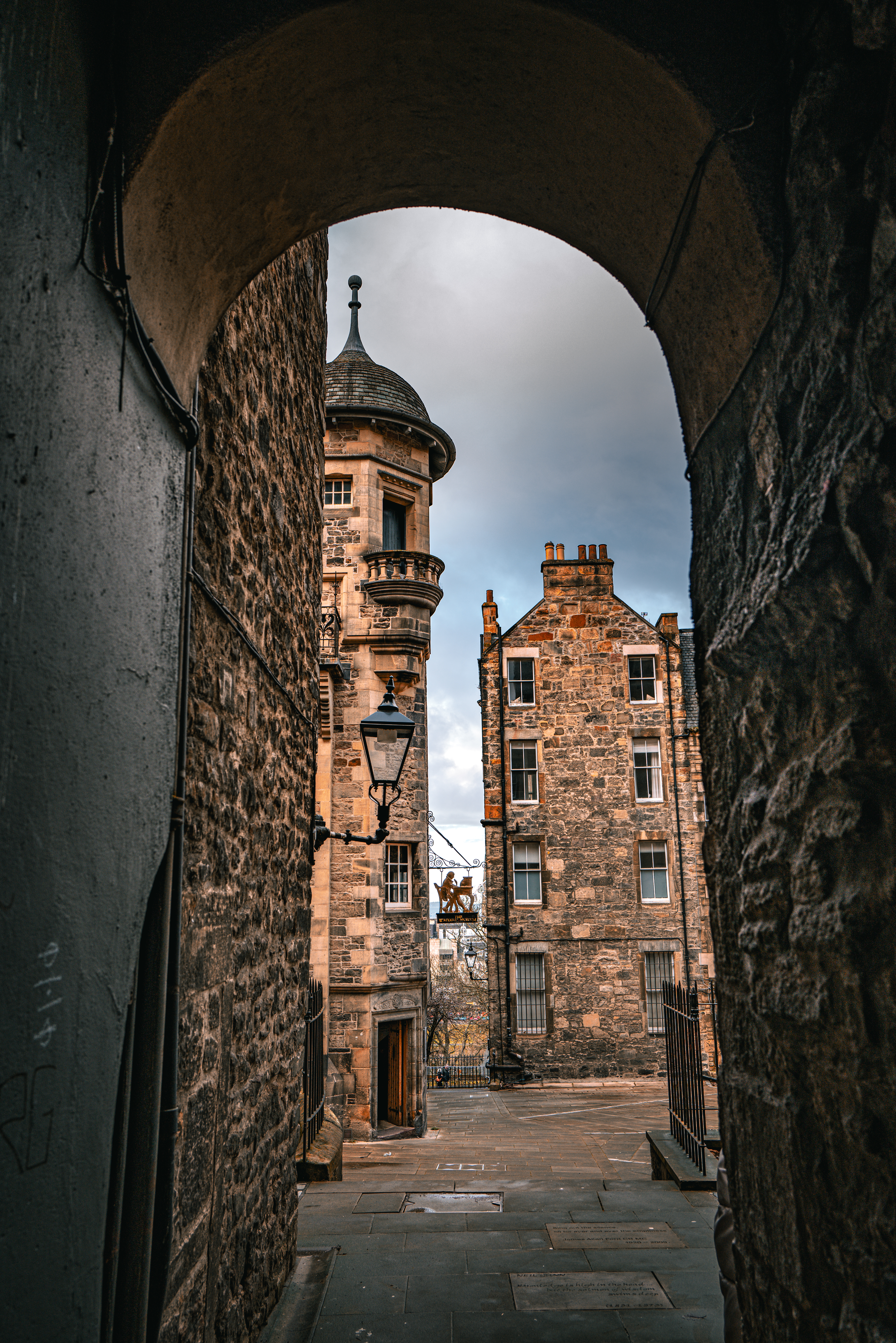Begin, as all good stories do, with a descent. Start at St Giles’ Cathedral, whose dark spire claws at the sky like something half-biblical, half-Gothic nightmare. Just beside it, slip into Barrie’s Close, a narrow slit in the stone that feels like time travel. The air cools instantly. The light thins. Seven storeys of medieval tenements rise on either side, pressing in like a crowd of old ghosts.
