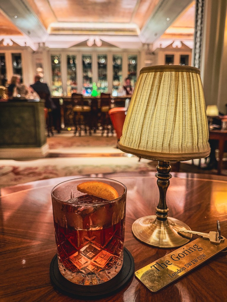Check-in happened at the same speed our bags vanished. Then, like the first line of a good novel, the real story arrived: The Goring Bar, and, because the universe has a sense of comedic timing, a Goring Negroni was already waiting, my reputation clearly preceding me.